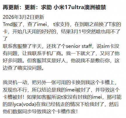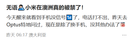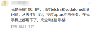 “今天醒来就看到手机没信号了,电话打不出,昨天去Optus特地问过,现在是除了换手机,没其他办法了”
