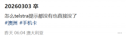 “怎么telstra提示都没有也直接没了”