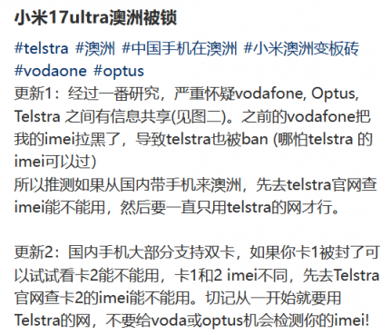 一时间,网络上众说纷纭,有人表示,从国内带到澳洲去的不行,但在澳洲买中国手机的国际版不受影响: